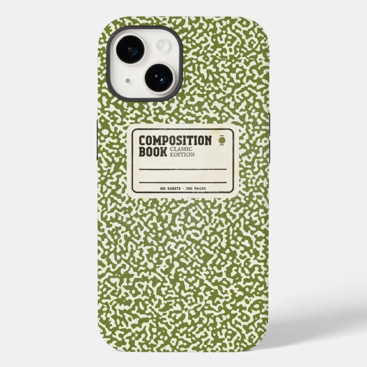 Alternatively, you can start browsing iPhone cases from this single vintage green composition notebook tough case.