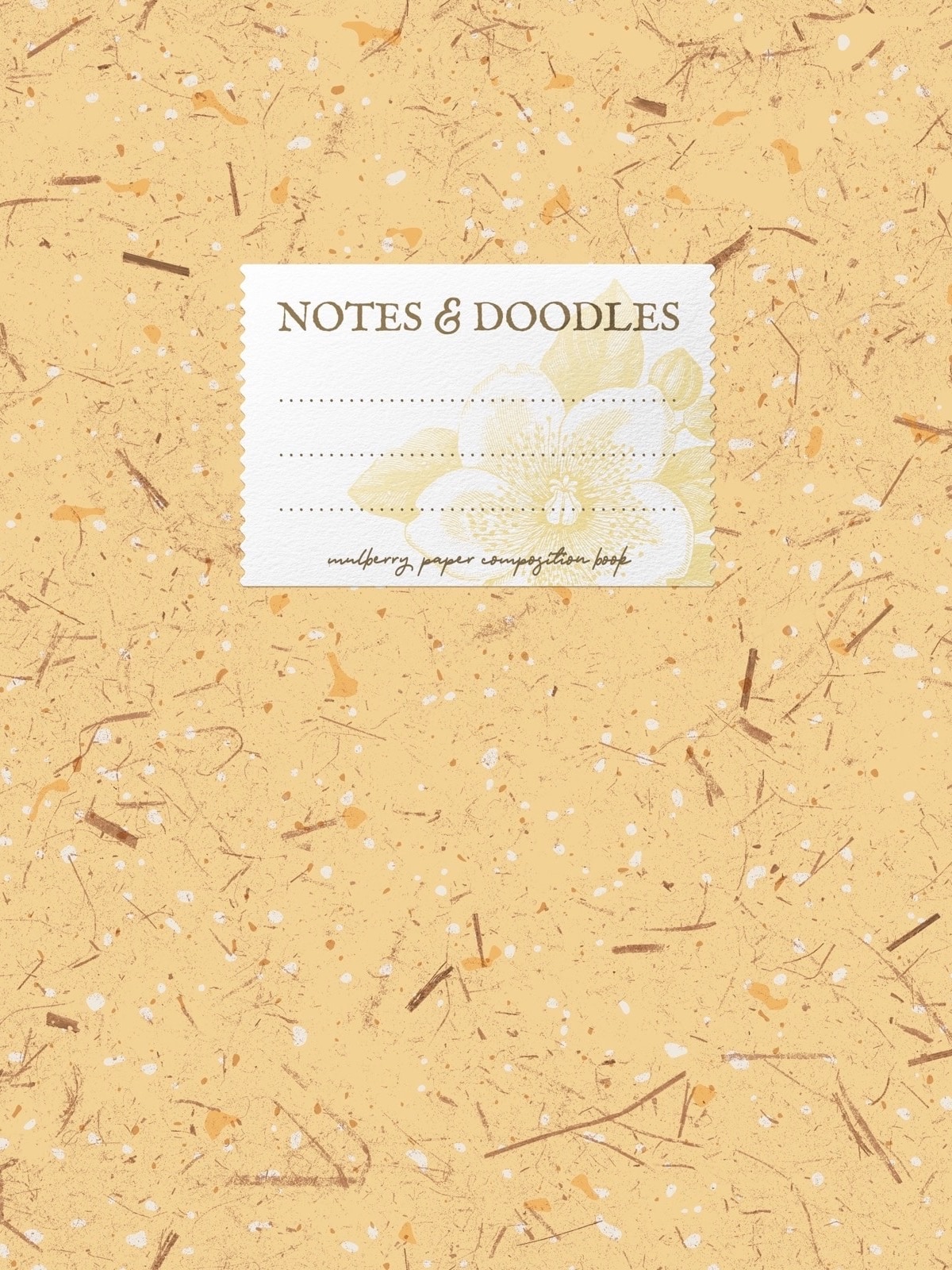 To give it a modern, minimalist look, I have designed the labels with a large engraved flower in a color corresponding with the background. The serif, timeless typeface says “Notes & Doodles”.