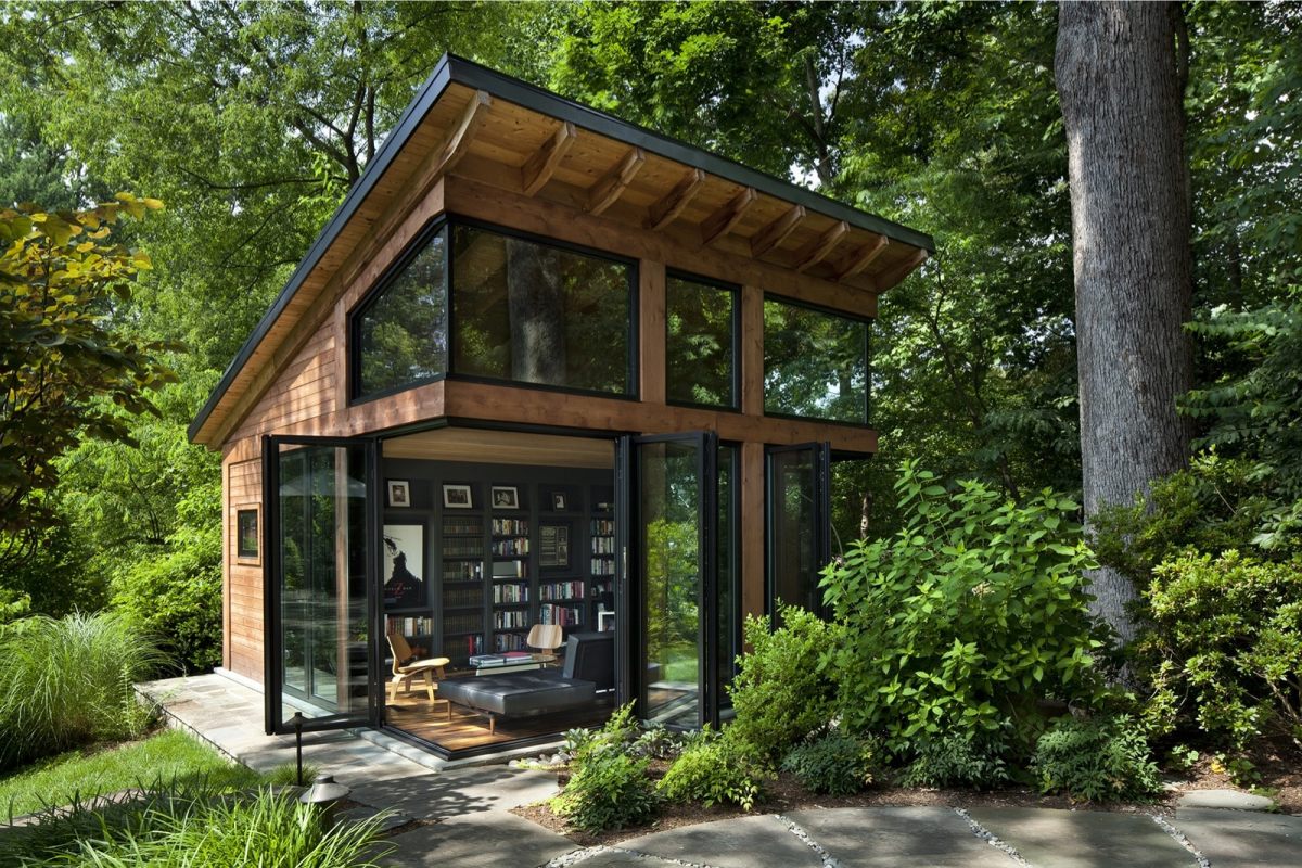 Architects from Harrison Design created a contemporary, 400-sq. ft., wood-and-glass studio for a writer who sought a quiet refuge.