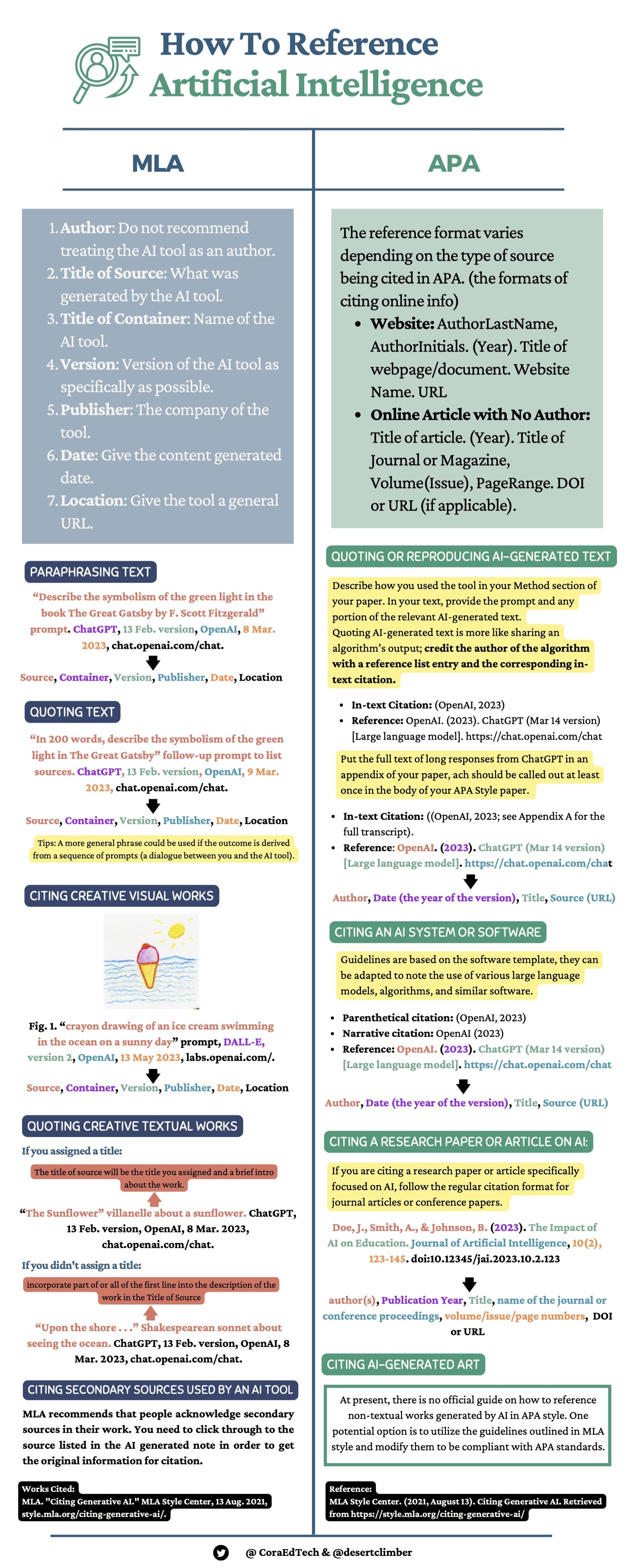 Cora Yang has just shared a helpful chart that analyzes ways to reference AI in two citation styles: MLA and APA.