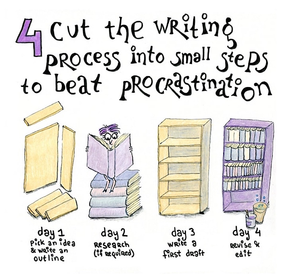 How to write all year long – beat procrastination by cutting the writing process into smaller steps.