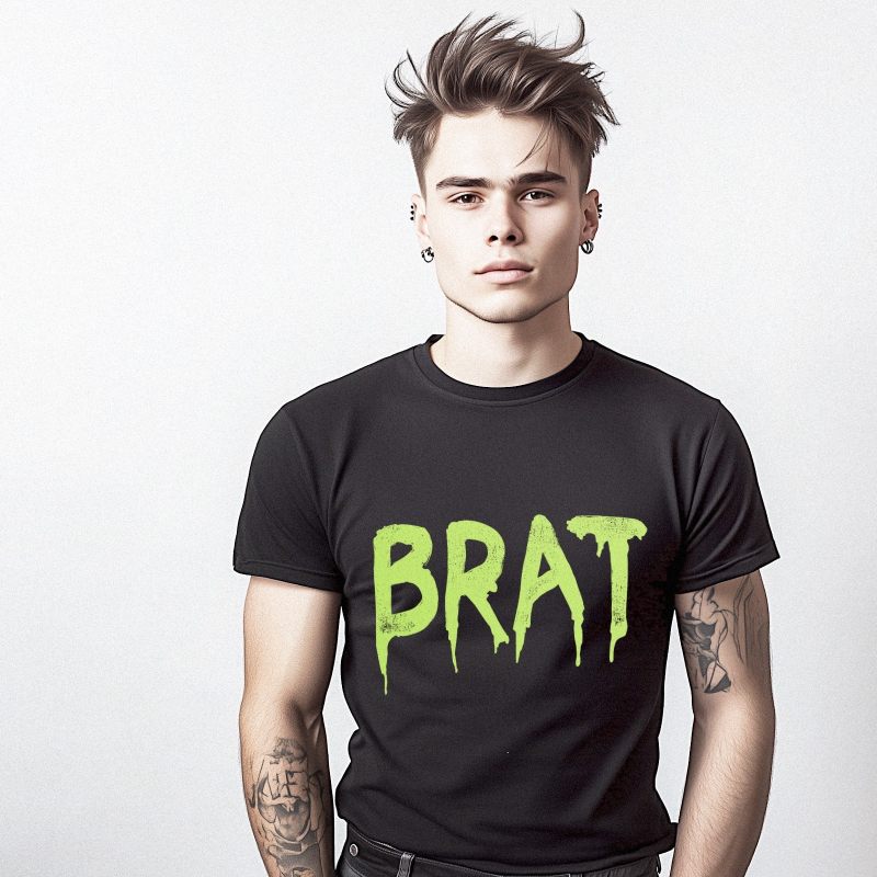 Forget the simple brat in lowercase typeface, and go for a grunge, street style, alternative, painted brat in lime green. It much better describes the rebellious spirit of the youth.