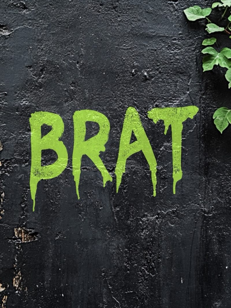 Forget the simple brat in lowercase typeface, and go for a grunge, street style, alternative, painted brat in lime green. It much better describes the rebellious spirit of the youth.
