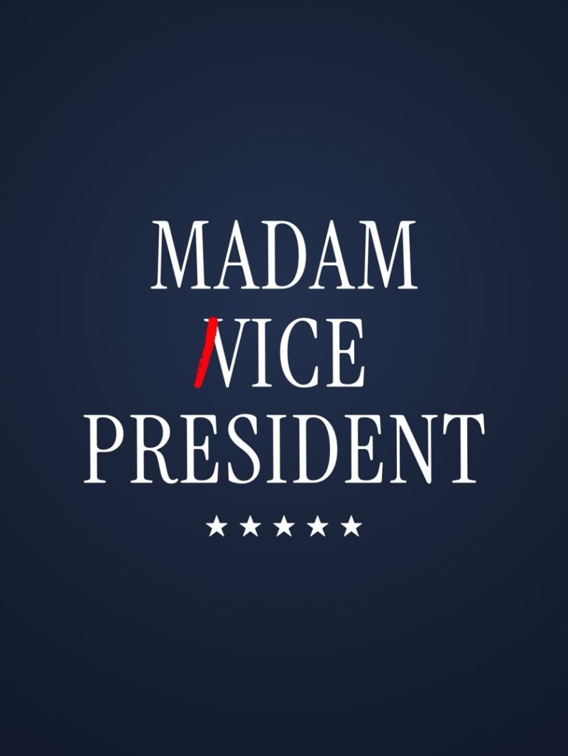 This minimalist Madam President Harris 2024 US Election cleverly plays with words – by adding just one line, you replace the word “vice” with “nice”.